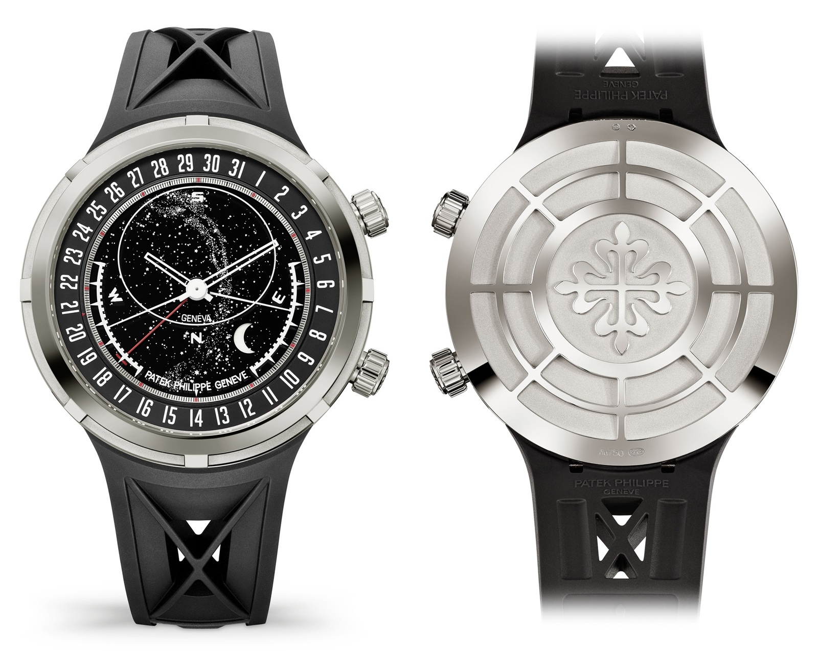 При этом видимая из Женевы (или любого другого города, расположенного на той же широте) часть неба обозначена овальным элементом, напечатанным с обратной стороны сапфирового стекла часов, а время восхода и заката Солнца синхронно корректируется при переходе с зимнего на летнее время и обратно, что осуществляется при помощи утопленных в корпус в положении «9 и 10 часов» пушеров.