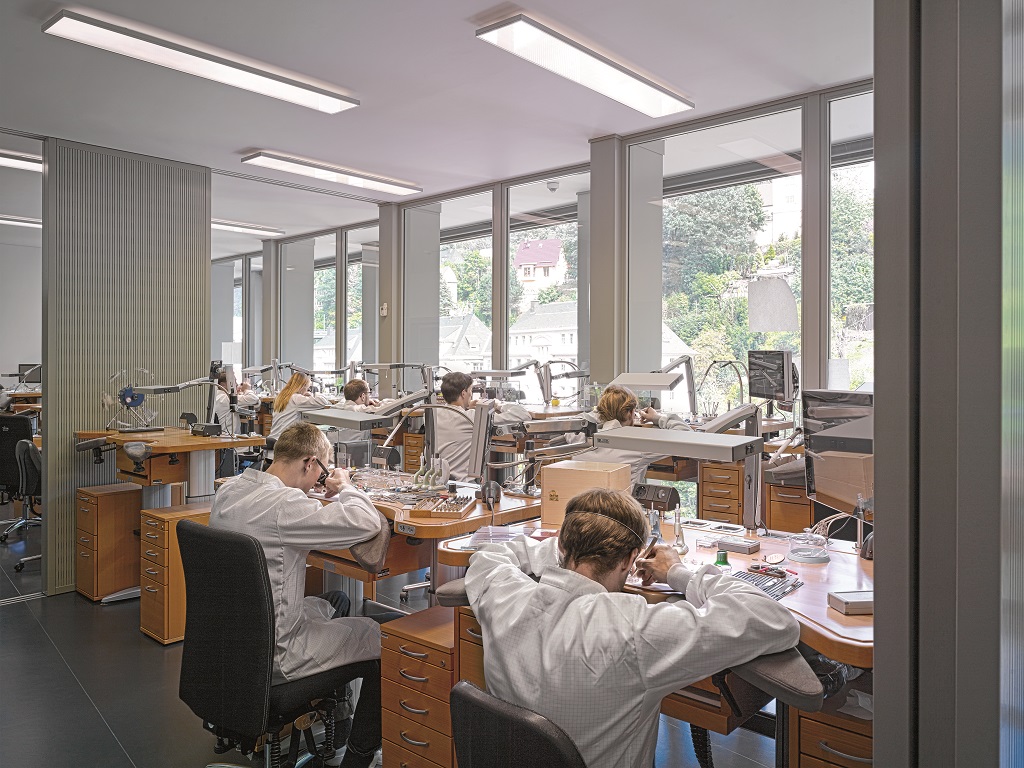 В ультрасовременных мастерских часовщики могут работать в условиях отсутствия внешней пыли. Двухслойный климатический фасад позволяет регулировать состояние воздуха в помещении.