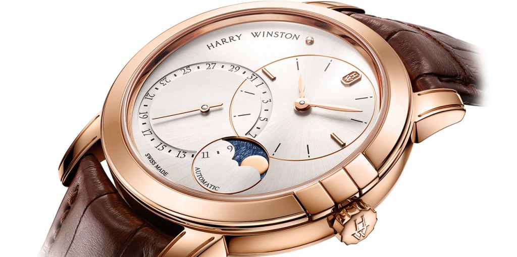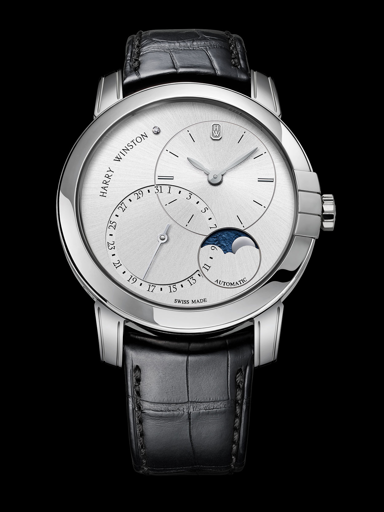 Необычная интерпретация часов с индикацией даты и лунных фаз вышла под эгидой коллекции Midnight часового подразделения марки Harry Winston.