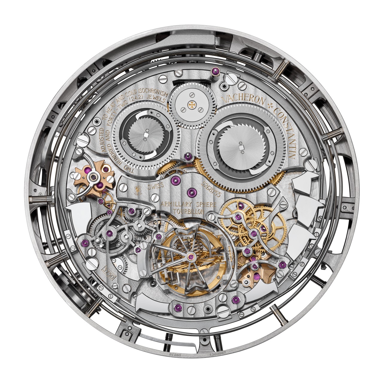 Оборотная сторона Ref. 57260 также полна удивительных сюрпризов — помимо астрономических индикаций (например таких, как время восхода и заката солнца), там присутствуют несколько уникальных систем, в том числе второй часовой пояс с 12-часовым форматом и цифровым дисплеем мирового времени, двойной вечный календарь и сферический турбийон в виде армиллярной сферы.