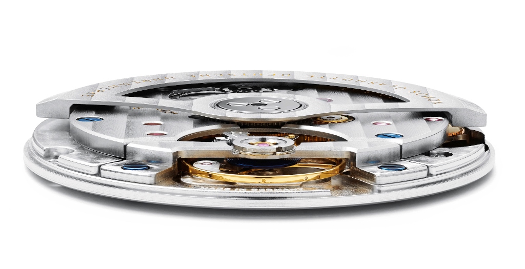 12 ¾-линейный тонкий (3.2 мм) автоматический механизм собран на 27 камнях, обладает запасом хода в 42 часа и характеризуется присутствием авторского спуска NOMOS Swing Sysytem с синей спиралью баланса.