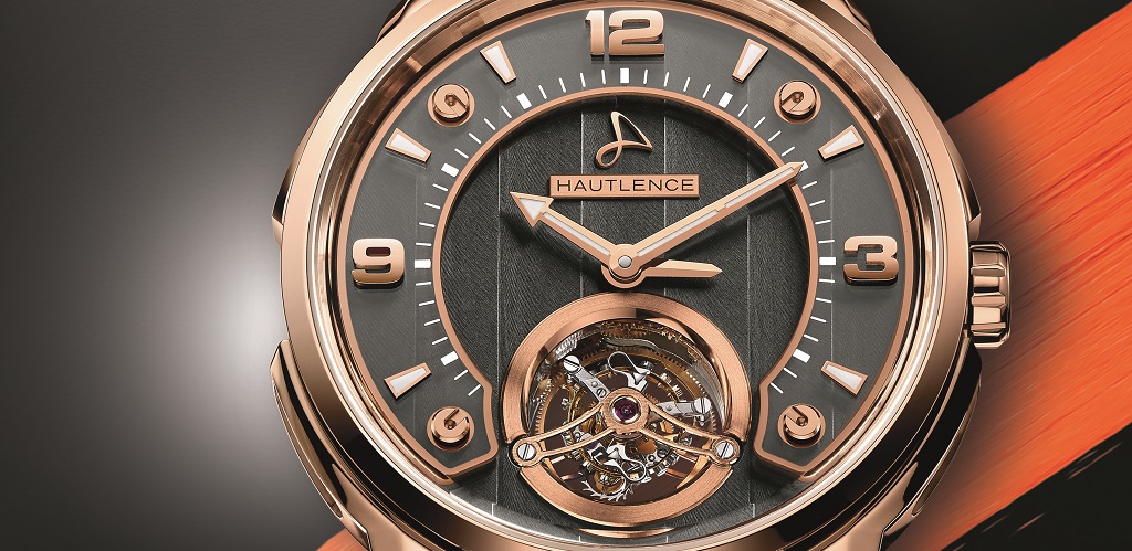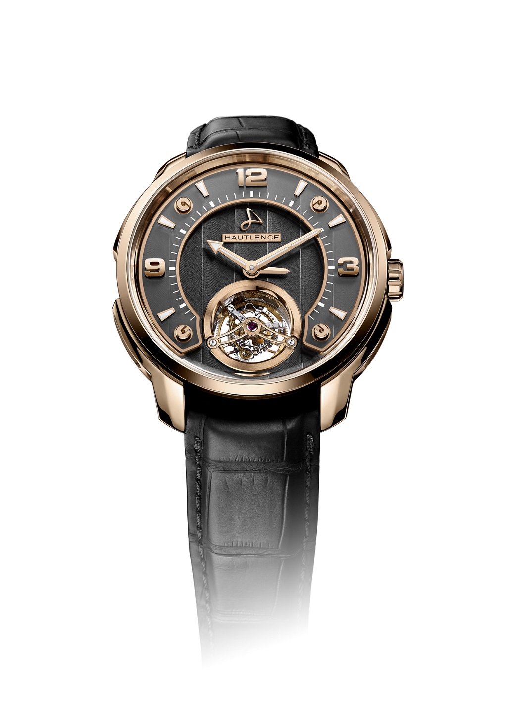 Первая в короткой истории марки Hautlence модель с турбийоном, Tourbillon 01, поставляется на черном ремне из кожи аллигатора.