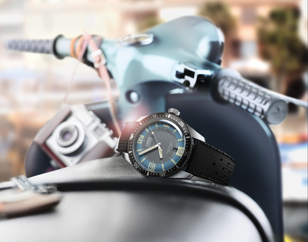 Швейцарская часовая марка Oris представляет новую модель Divers Sixty-Five с двухцветным серым и светло-синим циферблатом оттенка «Довиль». В дизайне циферблата нашла отражение популярная в 1960-е цветовая палитра, связанная в восприятии тех лет с элитарным приморским курортным местечком – французским городом Довиль.