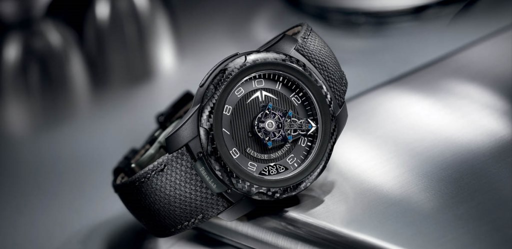 И если первая модель козыряла корпусом из белого золота, то новая версия предлагает любопытное сочетание корпуса из черненого титана и карбонового безеля. Диаметр, разумеется, остался тем же, 45 мм, а вместо классического кожаного ремня теперь присутствует черный кожаный ремень с карбоновым мотивом.