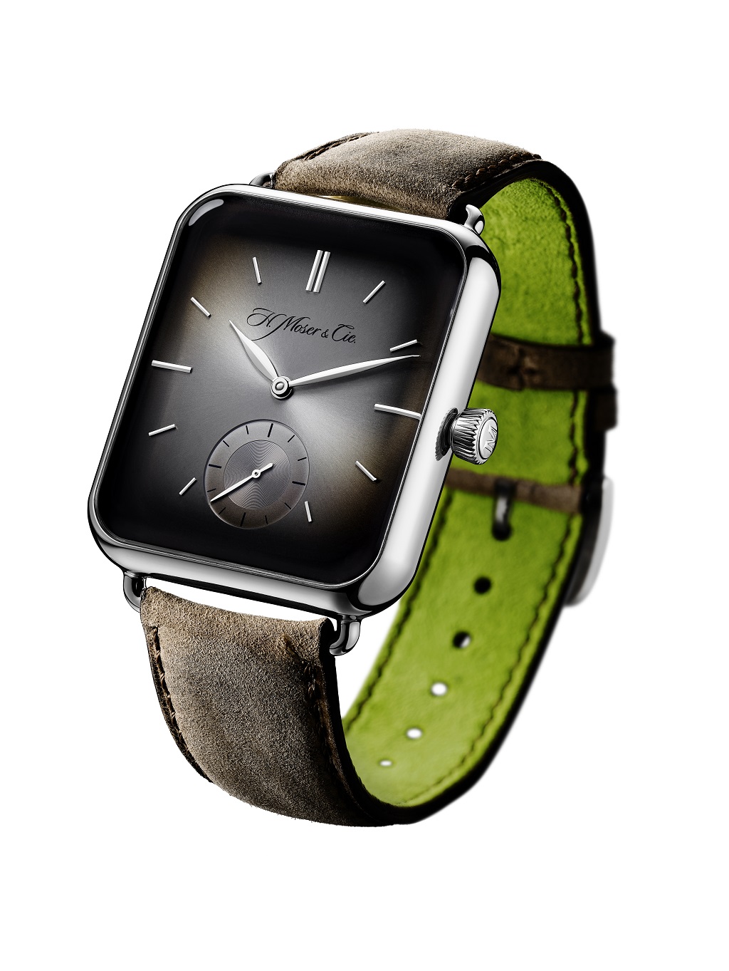 Циферблат fumé, как фирменный знак марки H. Moser & Cie., подчеркивает их характер, а ремешок из кожи антилопы куду с кожаной подкладкой фирменного зеленого цвета Moser дополняет современный дизайн модели.