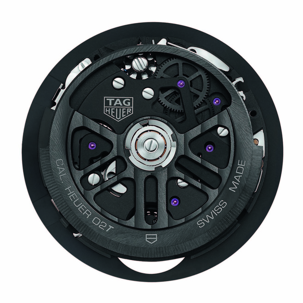 Для оптимизации процесса сборки в мастерских TAG Heuer в г. Шевене был придуман специальный корпус. В него устанавливается легкий турбийон, изготовленный вручную 4 часовыми мастерами. Этот узел, вдохновленный моделью Monaco V4 Tourbillon, имеет центральные части из титана, а верхние — из карбона.