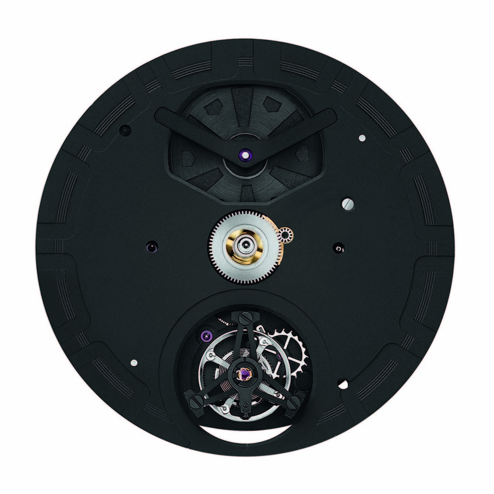 Часовой механизм помещен в корпус нового поколения диаметром 45 мм. Он имеет нестандартную модульную конструкцию, состоит из 12 деталей и выполнен из титана Grade 5, легкого и крайне устойчивого к ударам материала.