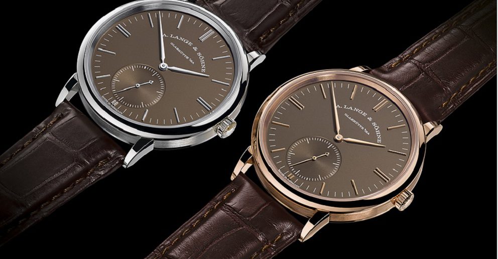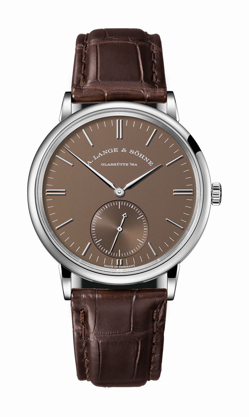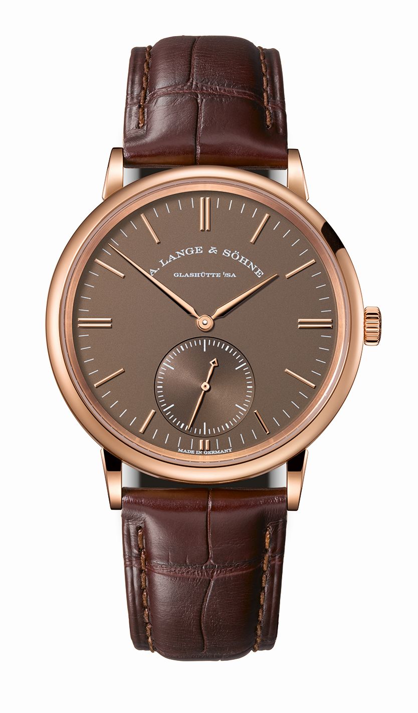 Самые тонкие автоматические часы в актуальном каталоге A. Lange & Söhne поставляются на кожаном ремне коричневого цвета с классической застежкой из золота.