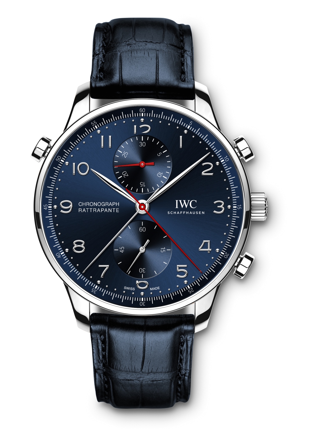 В свою очередь, циферблат версии Edition “Boutique Munich” (Ref. IW371217) оформлен в синих тонах, а череда серебристых стрелок разбавлена красными указателями секундомера и 30-минутного накопителя хронографа.