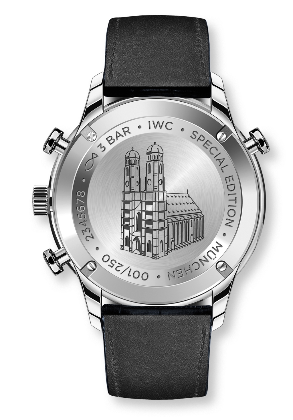 Логично, что наиболее уместным цветом ремня стал темно-синий, а связь с баварской столицей прослеживается в гравированном изображении Фрауэнкирхе — мюнхенского собора, ставшего символом города.