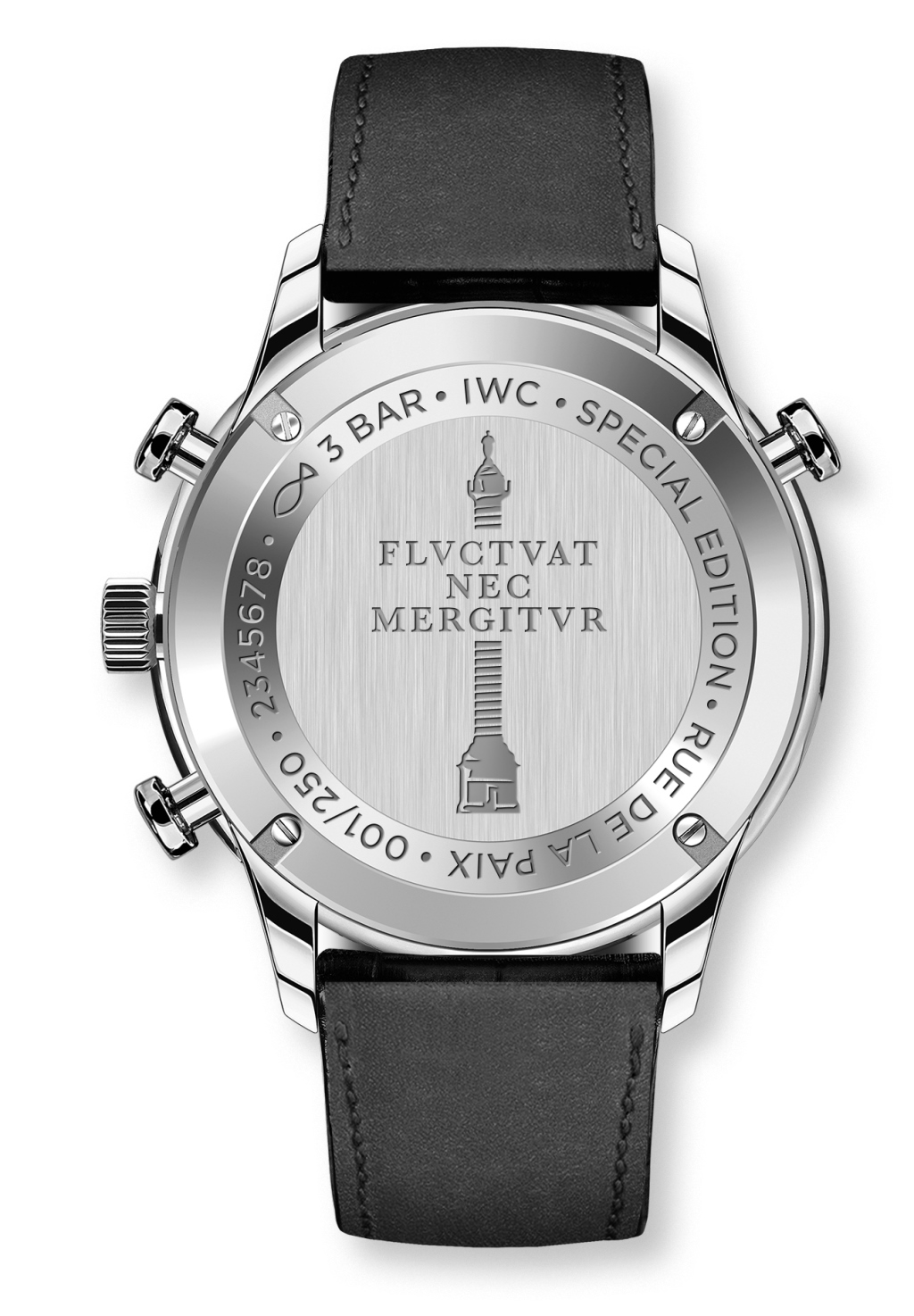 Заднюю крышку корпуса украшает рельефное изображение Вандомской колонны и девиз французской столицы — «Fluctuat nec mergitur». Дополняет издание черный ремень из кожи аллигатора с раскладной застежкой из стали.