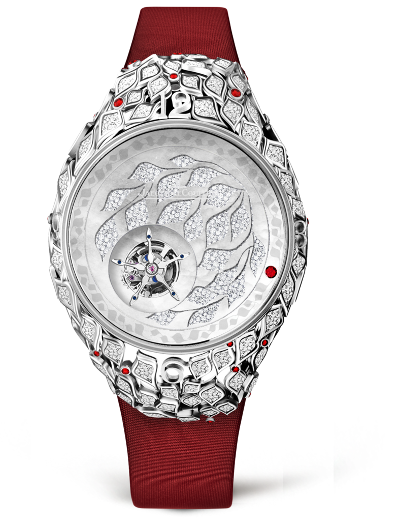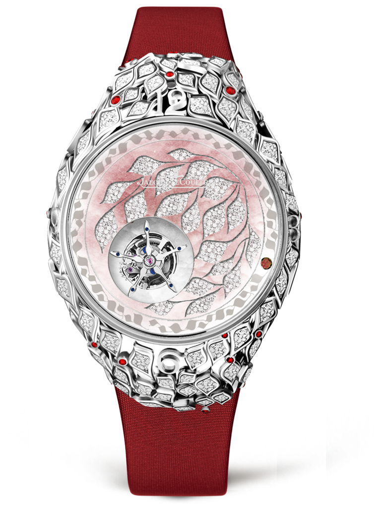 Часы используют аналогичный автоматический механизм JLC 941 и похожий принцип индикации, главное внимание здесь уделено декору 39-миллиметрового корпуса из белого золота и перламутрового циферблата — на обоих элементах присутствует излюбленный маркой мотив в виде листьев вьюнка.