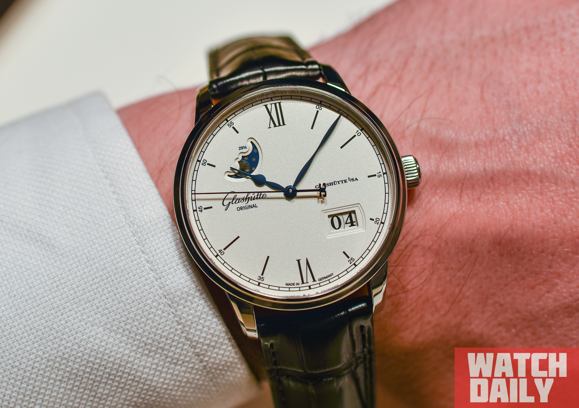Аналогичными габаритными параметрами и материалами исполнения характеризуется и другая модель — Senator Excellence Panorama Date Moon Phase — в которой к индикатору большой даты добавлен дисковый указатель лунных фаз (Calibre 36-04).