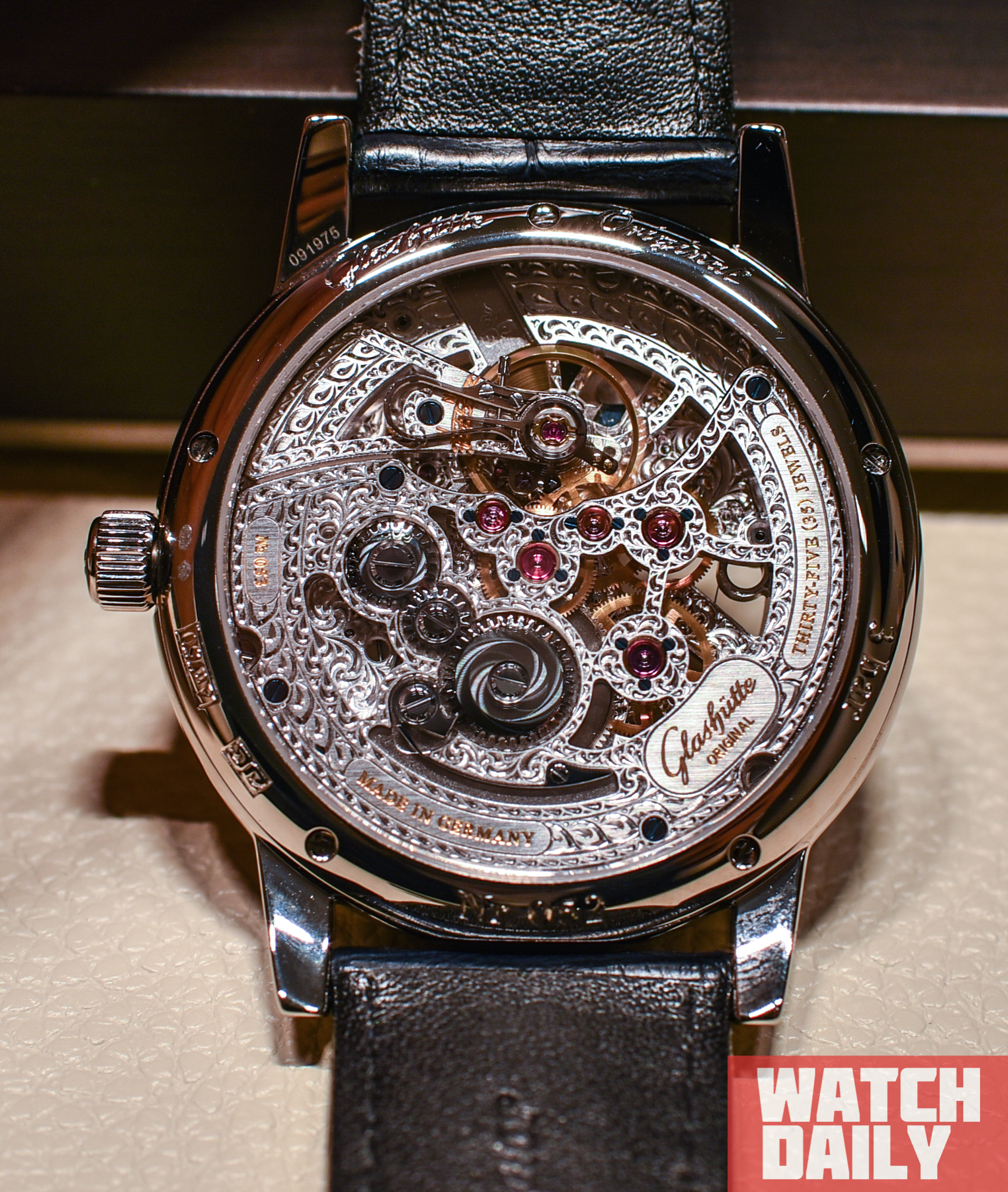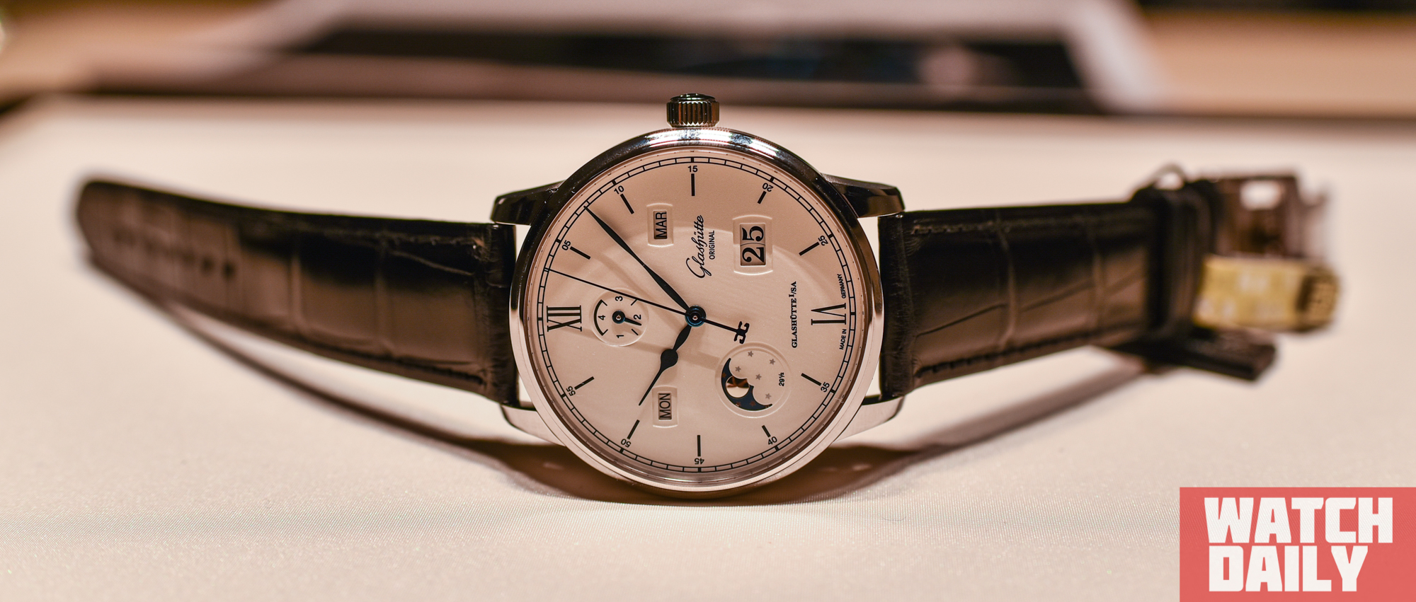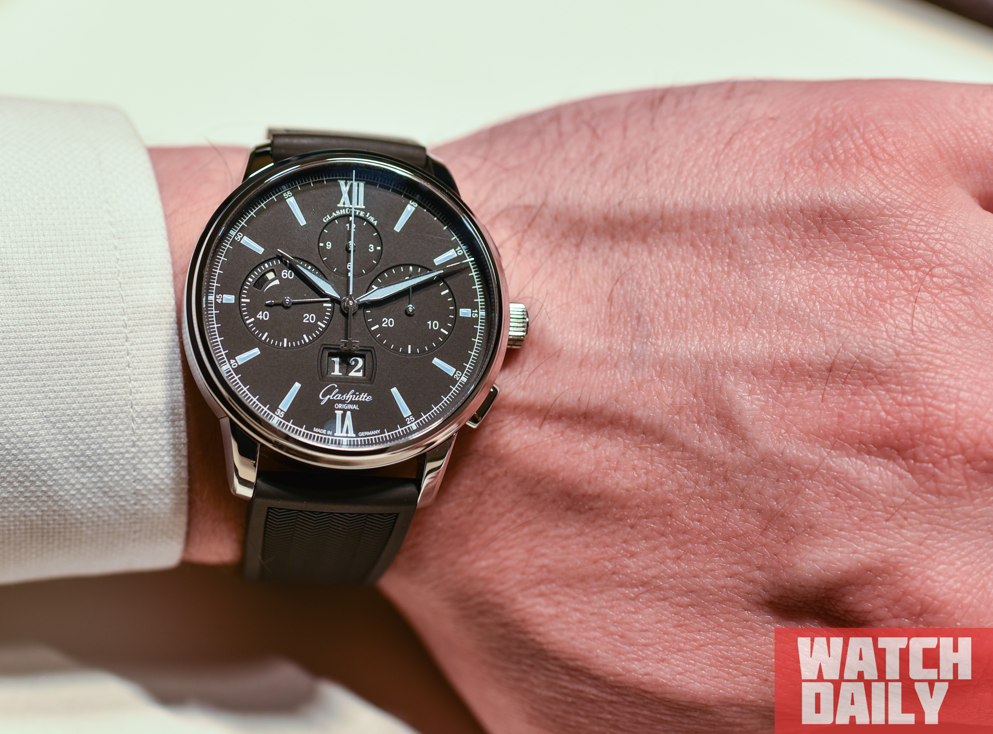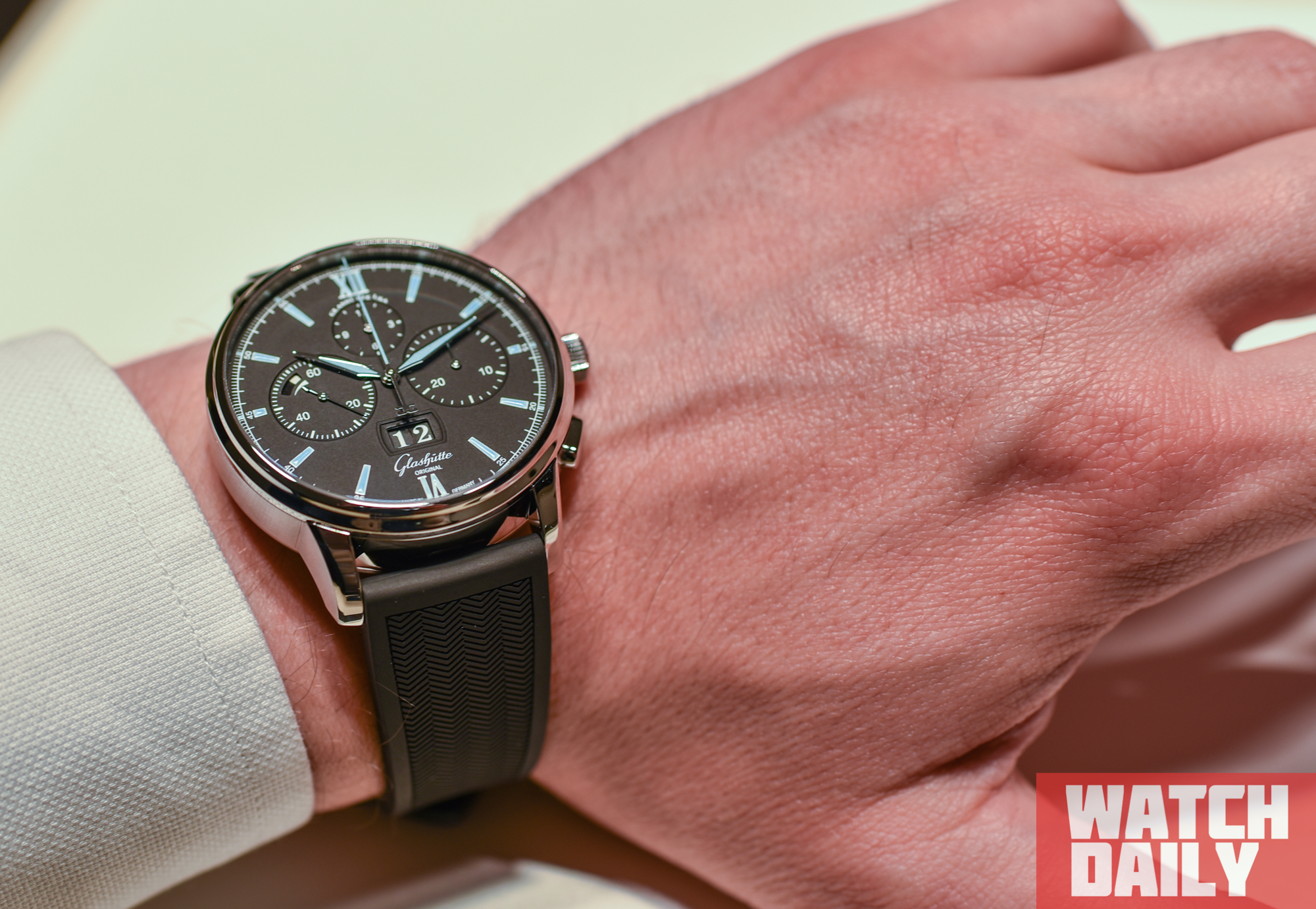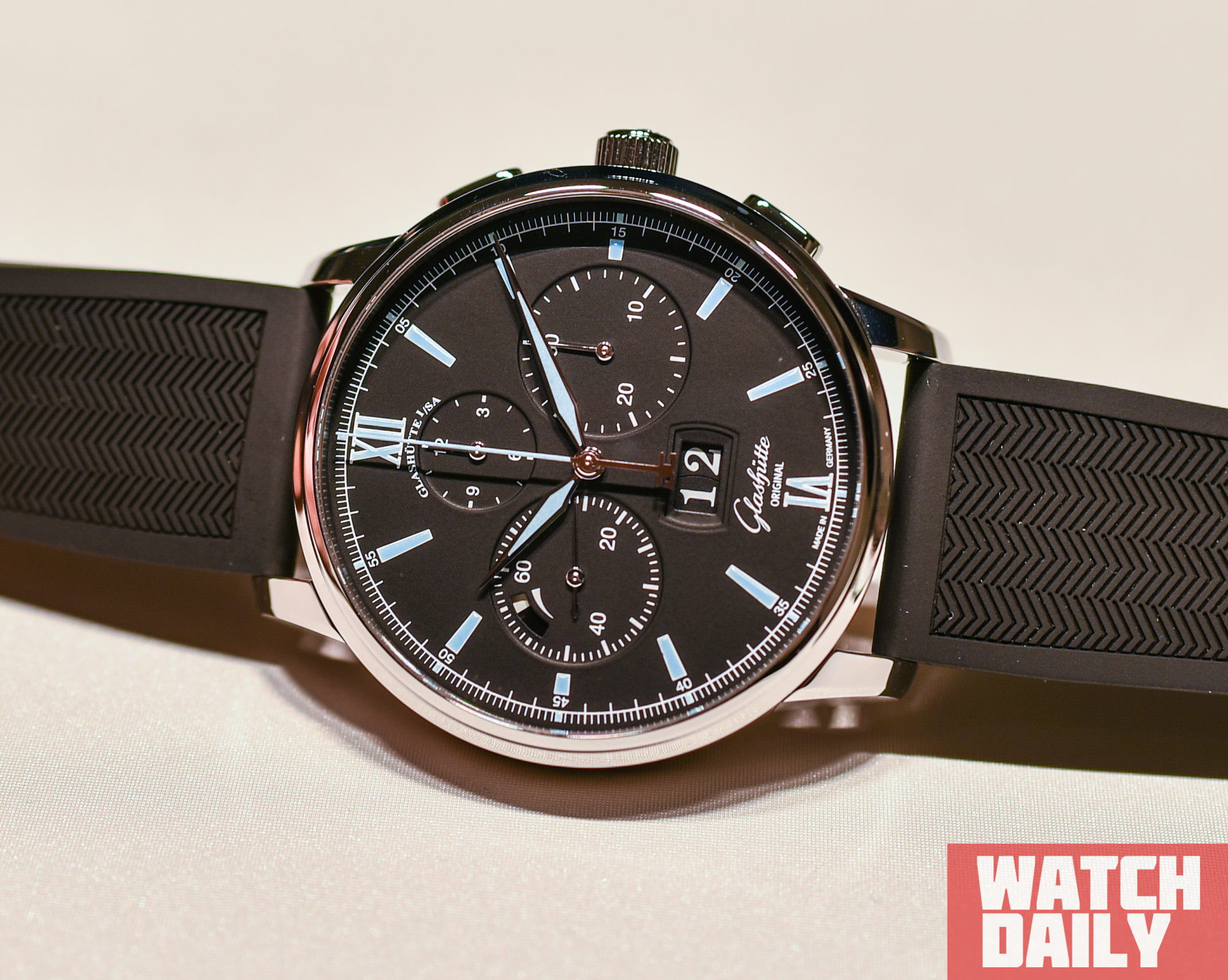 Второй важной премьерой Glashütte Original является новый вариант модели Senator Chronograph Panorama Date (диаметр — 42 мм, толщина — 14.6 мм), получившей новый черный циферблат вкупе с несколькими вариантами крепления изделия на запястье.