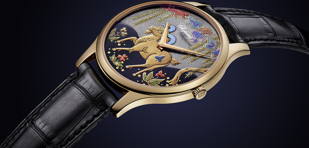 Ввиду того, что мануфактура Шопар решила увековечить в своей серии символы Китайского гороскопа, логично, что на циферблате новой модели красуется коза, знак 2015-го года. А если проследить совпадение окраски этого прекрасного животного с цветом ствола стоящей неподалеку ивы, становится очевидно, что коза самая что ни на есть «деревянная».