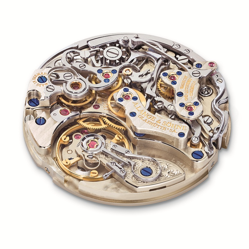 Лицевая сторона 1815 Chronograph, находящаяся в обрамлении корпуса из 18-каратного белого золота, предлагает дополнительный функционал в лице хронографа с центральным секундомером и 30-минутным накопителем в сочетании со строгой арабской разметкой и родированными указателями.