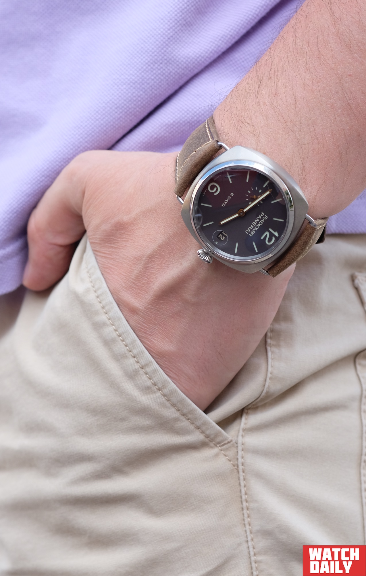 Но важнее другое – модель Radiomir 8 Days Titanio имеет свой шарм, свое очарование. Пусть он и несовместим со строгим деловым стилем, но зато определенно доставит удовольствие в непритязательной атмосфере выходного дня или отпуска. Да и в конце концов, эти часы просто отлично справляются со своей основной функцией…