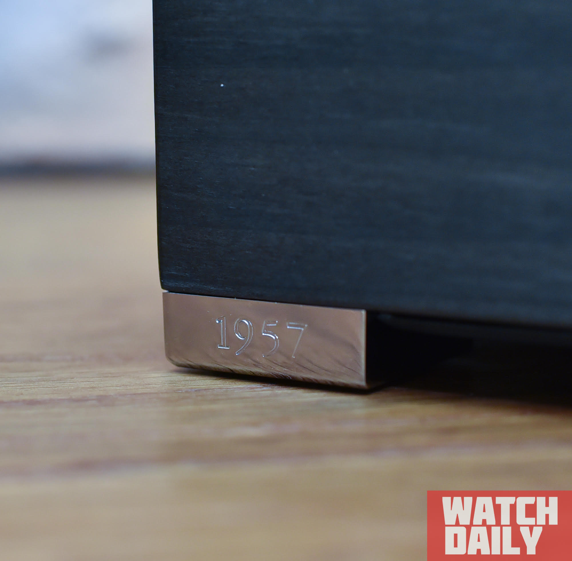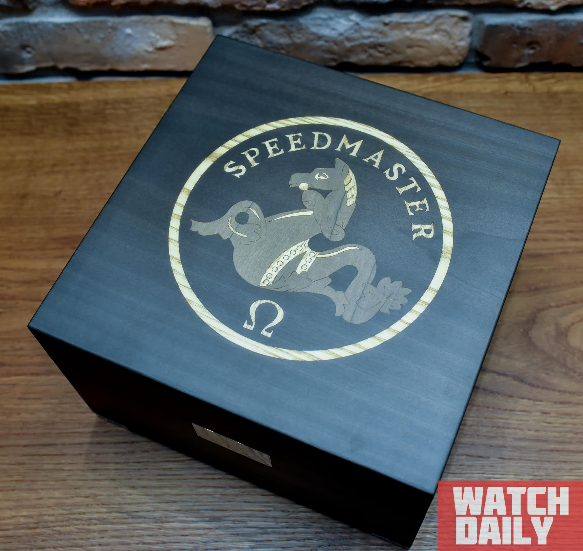 Деревянная коробка имеет габариты 30 х 20 х 20 см, а ее общий вес приближается к 6 кг. Она прочно стоит на ножках серебристого цвета, на которых выбиты все памятные года, связанные со знаковыми моментами покорения космического пространства и часами Speedmaster.