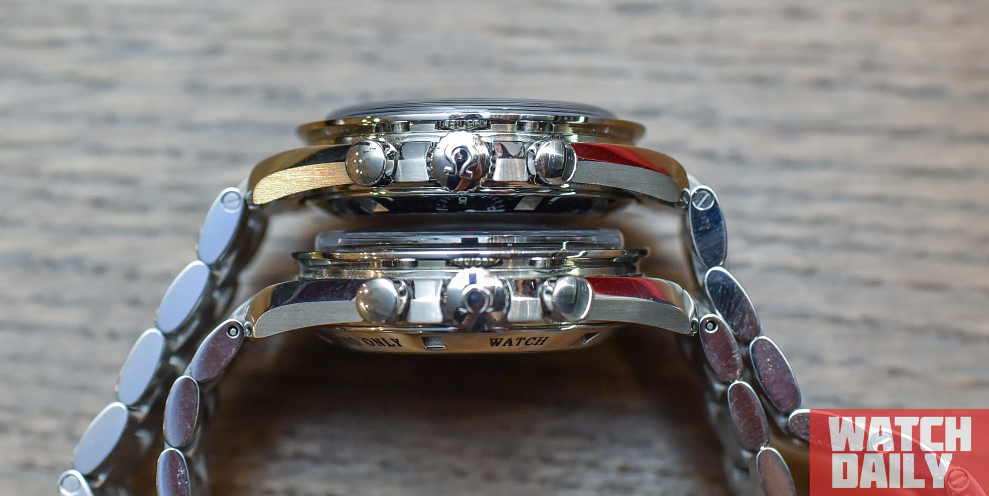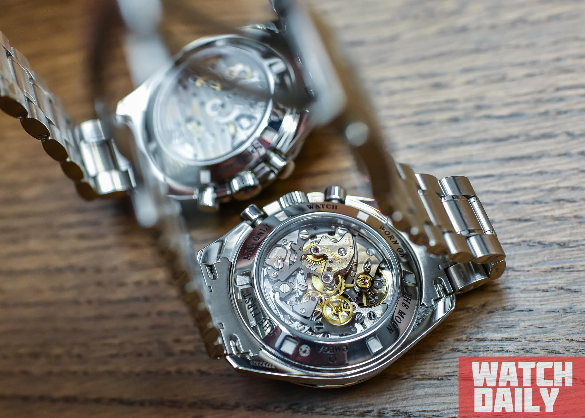 Исследуемая модель (на заднем плане) в сравнении со Speedmaster Professional на калибре 1863